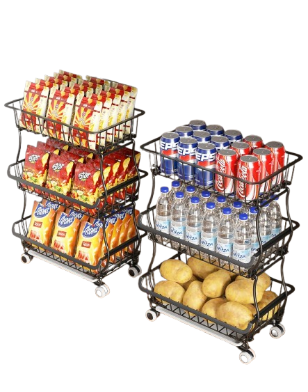 Spacious Storage: Large rolling cart provides ample room for pantry items, produce, snacks, bread, cans, and bottles.