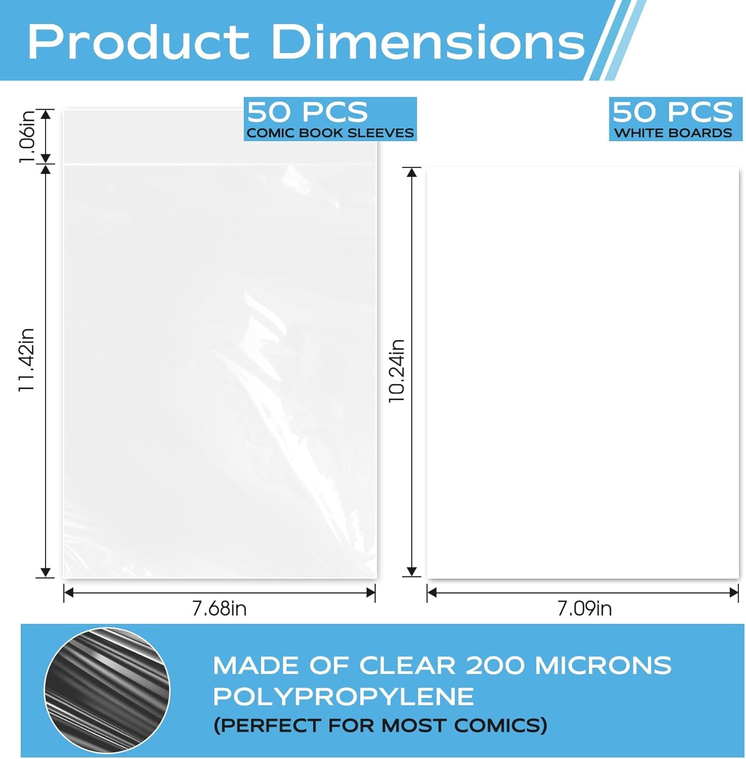 Ideal Size: Sleeves measure 7.68 x 11.42 inches, boards 7.09 x 10.24 inches, fitting most comics comfortably, including slightly thicker editions.