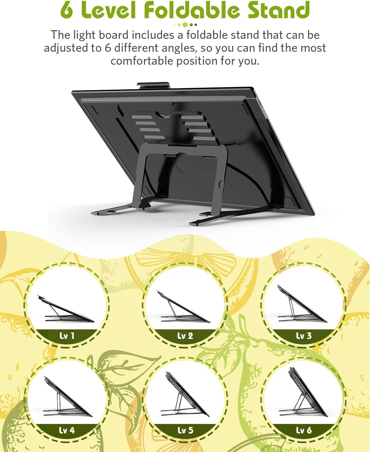 Adjustable Stand: Foldable stand with 6-angle adjustments ensures a comfortable position for professional or hobby use.