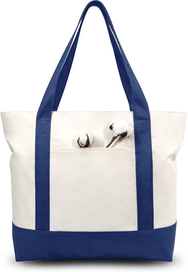 Canvas Tote Bag Reusable Grocery Bag Zipper Pocket