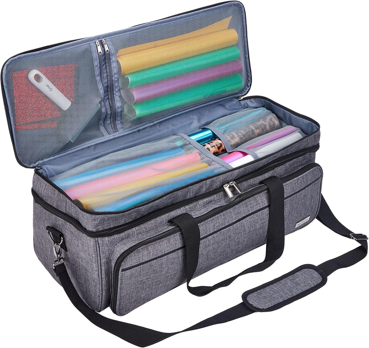 Spacious Double-Layer Layout: Two-layer construction provides extra room, with a top compartment designed for vinyl rolls, tools, and additional supplies.
