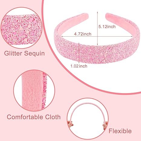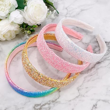 - Bright & Sparkly Design: Includes 4 glitter headbands in pink, white, gold, and rainbow—adds a pop of sparkle to any outfit.