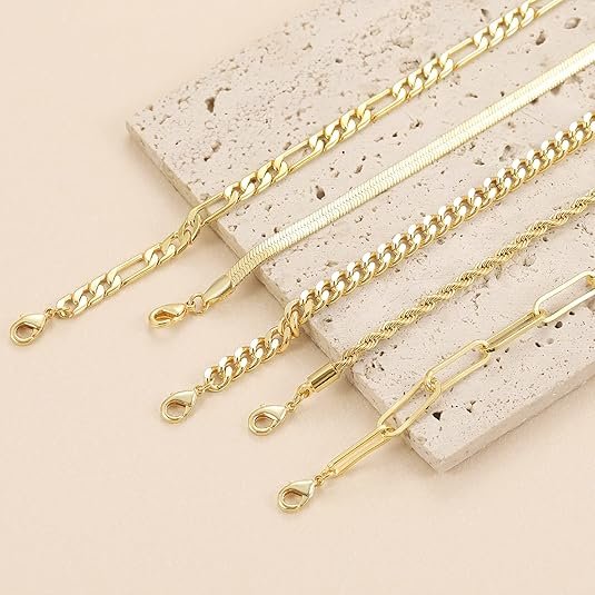 5-Piece Bracelet Set: Includes figaro, cuban, rope, paperclip, herringbone styles