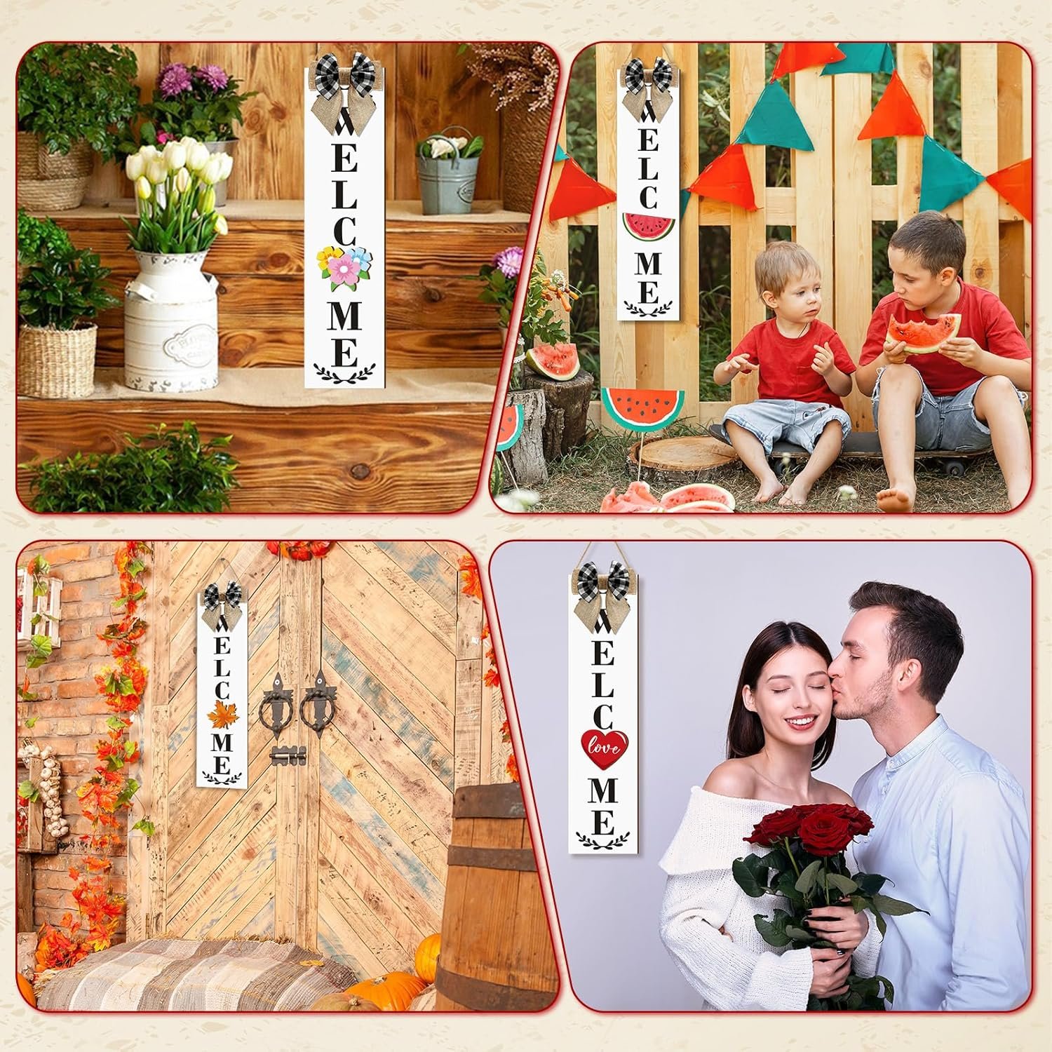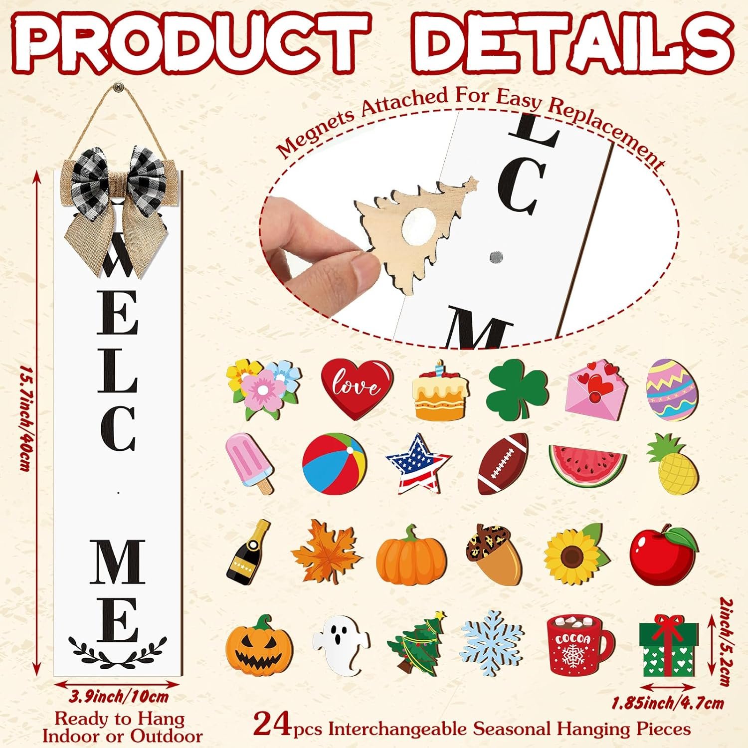 • Complete Interchangeable Set: Includes 1 welcome sign and 24 small wooden accessories in various styles, allowing easy seasonal or holiday customization for your porch, wall, or entryway.