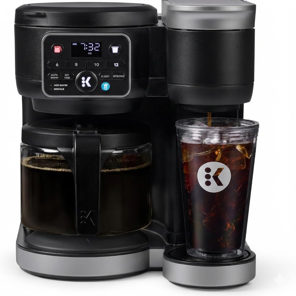 Brew Flexibility: Works with both K-Cup pods and coffee grounds, allowing single-cup or full carafe brewing.