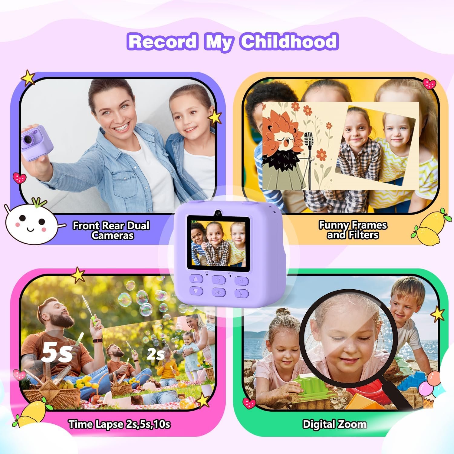 Kids Instant Print Camera 1080P Dual Lens Toy