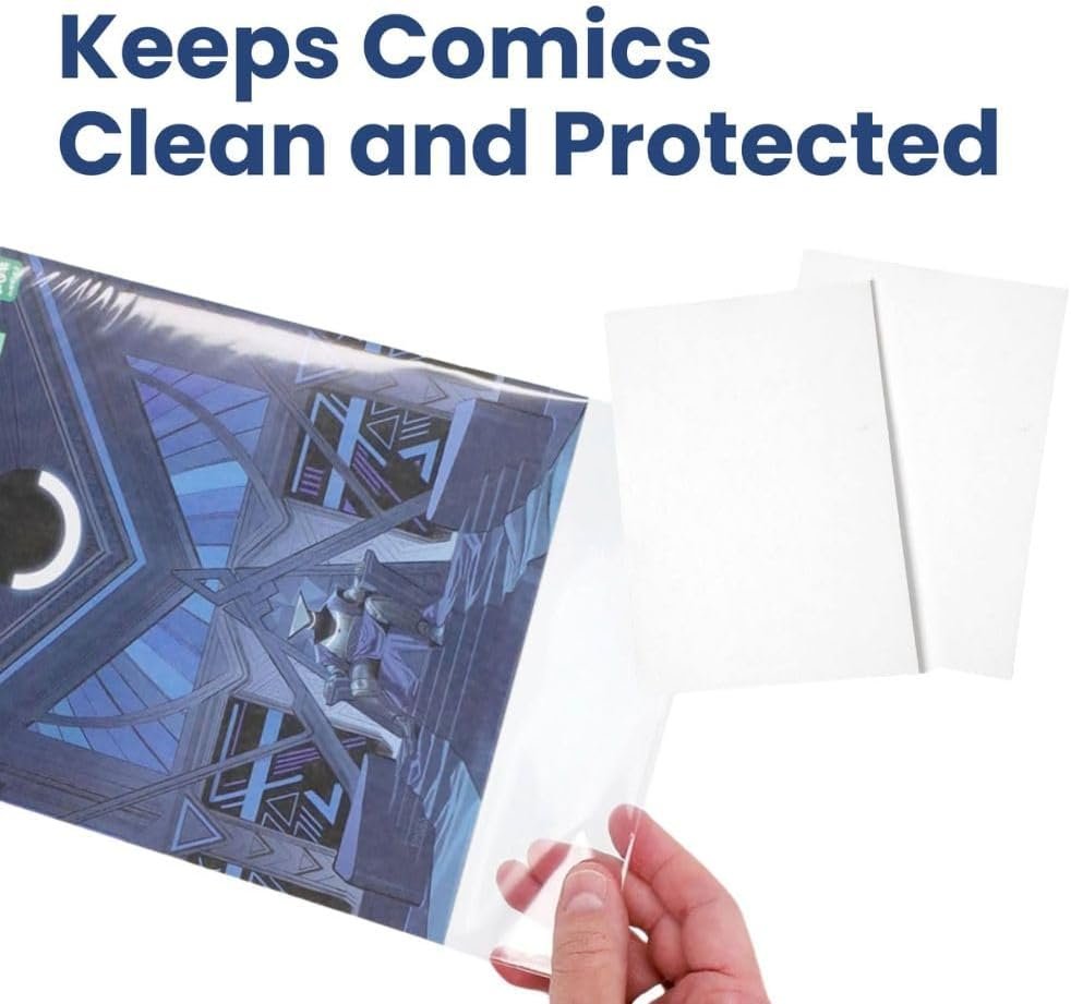 Convenient and Reliable: Each bag features a 1-1/2″ fold-over flap for secure closure, and coated boards allow easy insertion and removal without damaging comics.
