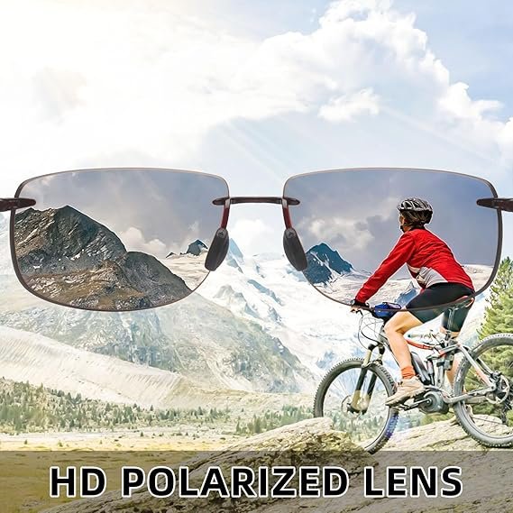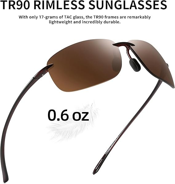 - Ergonomic Design: Rimless style with adjustable soft rubber nose pads and TR90 temples for comfort and secure fit
