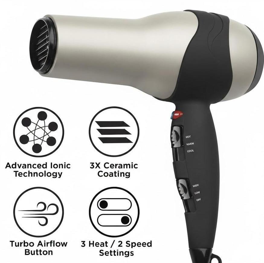 Powerful Airflow: Turbo button increases airflow for faster drying.