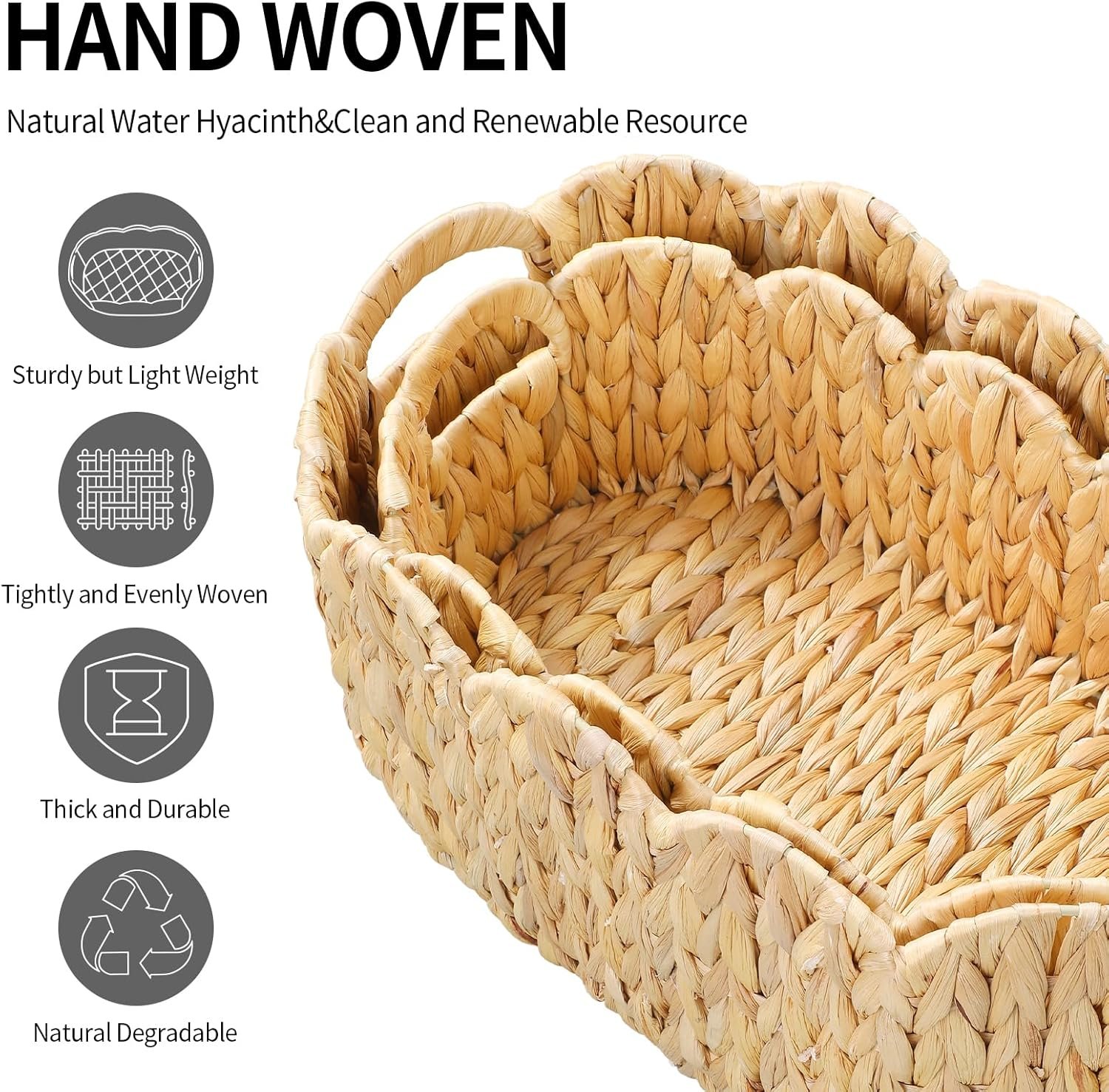 • Natural and Renewable Material: Hand-woven from high-quality, renewable water hyacinth that is both biodegradable and features a clean, natural finish.