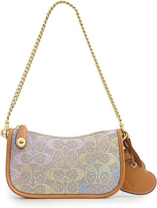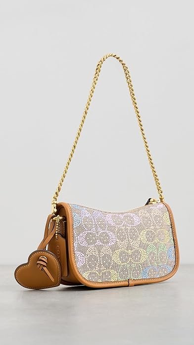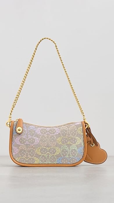 Elegant Crystal Design: Features full crystal embellishments with jacquard pattern and leather trim, finished with gold-tone hardware for a chic look.