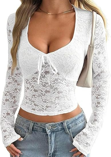 Design: Sexy V-neck, long sleeves, mesh crop top, Y2K style