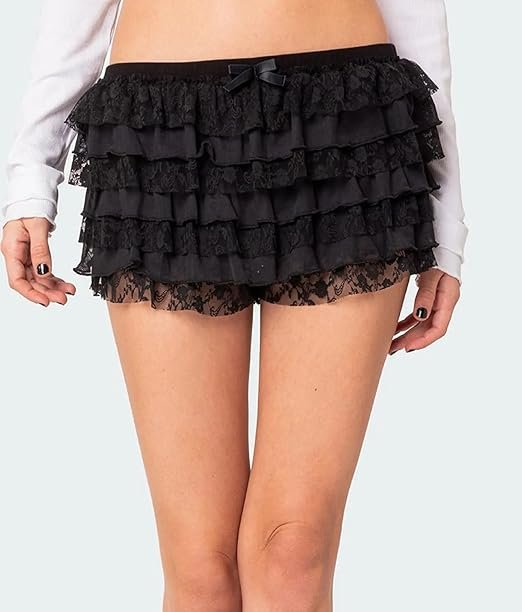 Features: Layered lace, scallop hem, ruffle frills, and bow trim