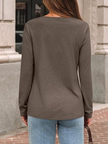 Womens Long Sleeve V Neck Casual Soft Basic Tops