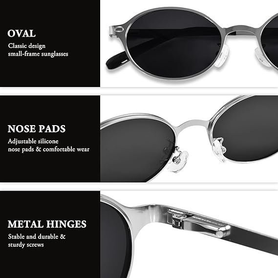• Retro Design: Slim metal frame with small oval shape inspired by 90s fashion for a timeless look