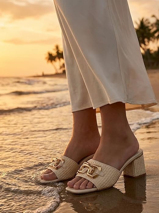 • Raffia & Metal Chain Design: Stylish for casual or dressy wear