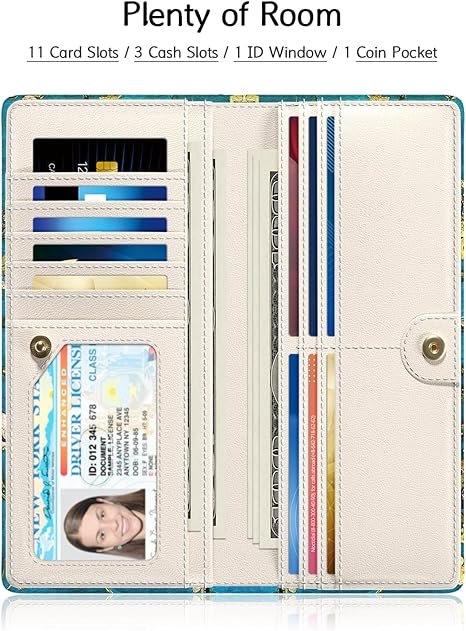 • Large Capacity Organization: Designed with 11 card slots, 1 clear ID window, 1 zippered coin pocket, and 3 long compartments for cash and receipts. Each card slot can hold 1–2 cards, offering ample space for everyday essentials.