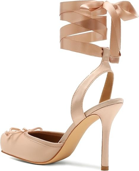 Women’s Satin Ballet Heels Square Toe Bow Lace Pumps