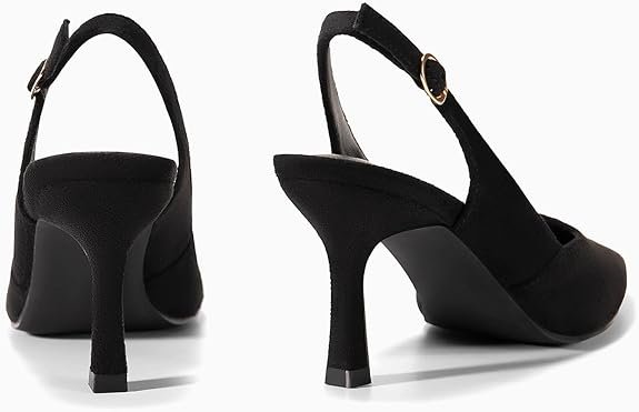 • Adjustable Slingback Strap: Buckle closure ensures a secure, customized fit