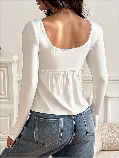 Women’s Square Neck Babydoll Peplum Top Long Sleeve Henle